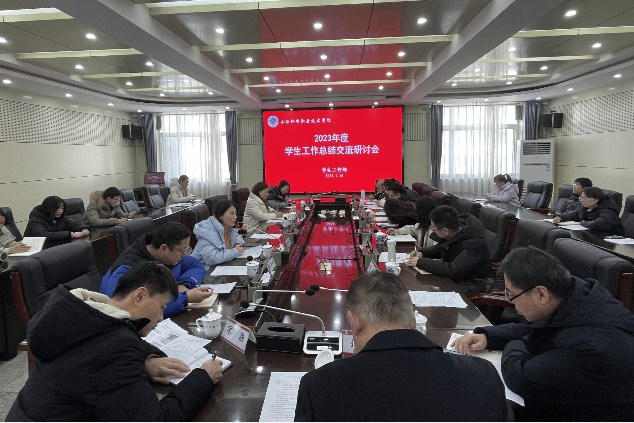 为总结经验、查找不足,促进学生工作人员交流团结,2024年1月26日下午,我院2023年度学生工作总结交流研讨会在主校区2号会议室举行,院党委委员、副院长李粉霞出席会议,各系党总支书记、副书记,全体辅导员,班主任代表以及学工部全体人员参加会议。会议由学工部部长李红玲主持。